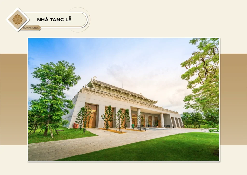 Đầy đủ các dịch vụ tiện ích của hoa viên nghĩa trang cao cấp: Đền trình, Nhà tang lễ, Tịnh xá, Nhà hoả táng, Xưởng bia mộ, Khu lưu trữ tro cốt và tổ chức sự kiện.