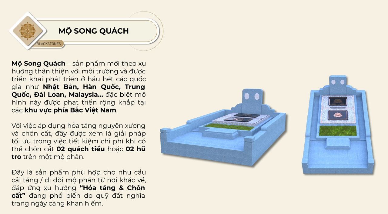 Là hoa viên nghĩa trang duy nhất tại Việt Nam có hệ thống kim tĩnh theo tiêu chuẩn hiện đại được xây dựng đồng bộ với công nghệ Châu Âu bảo vệ môi trường.